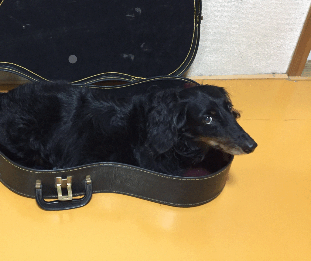 大好きなギターケースの中で遊んでいます!!目にも輝きがあります