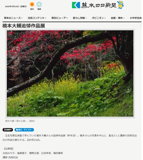 橋本さんの追悼作品展は熊本日日新聞でも紹介されました。
